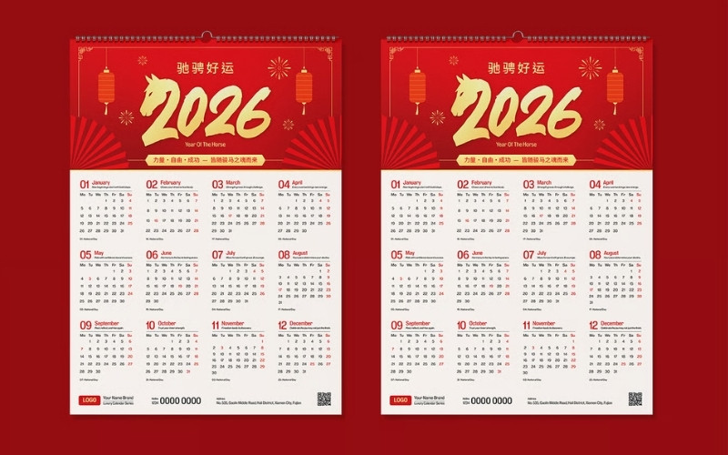 | Trọn bộ file bao gồm | Mẫu lịch năm con ngựa 2026 đẹp bản vector in ấn bản đẹp bao gồm: