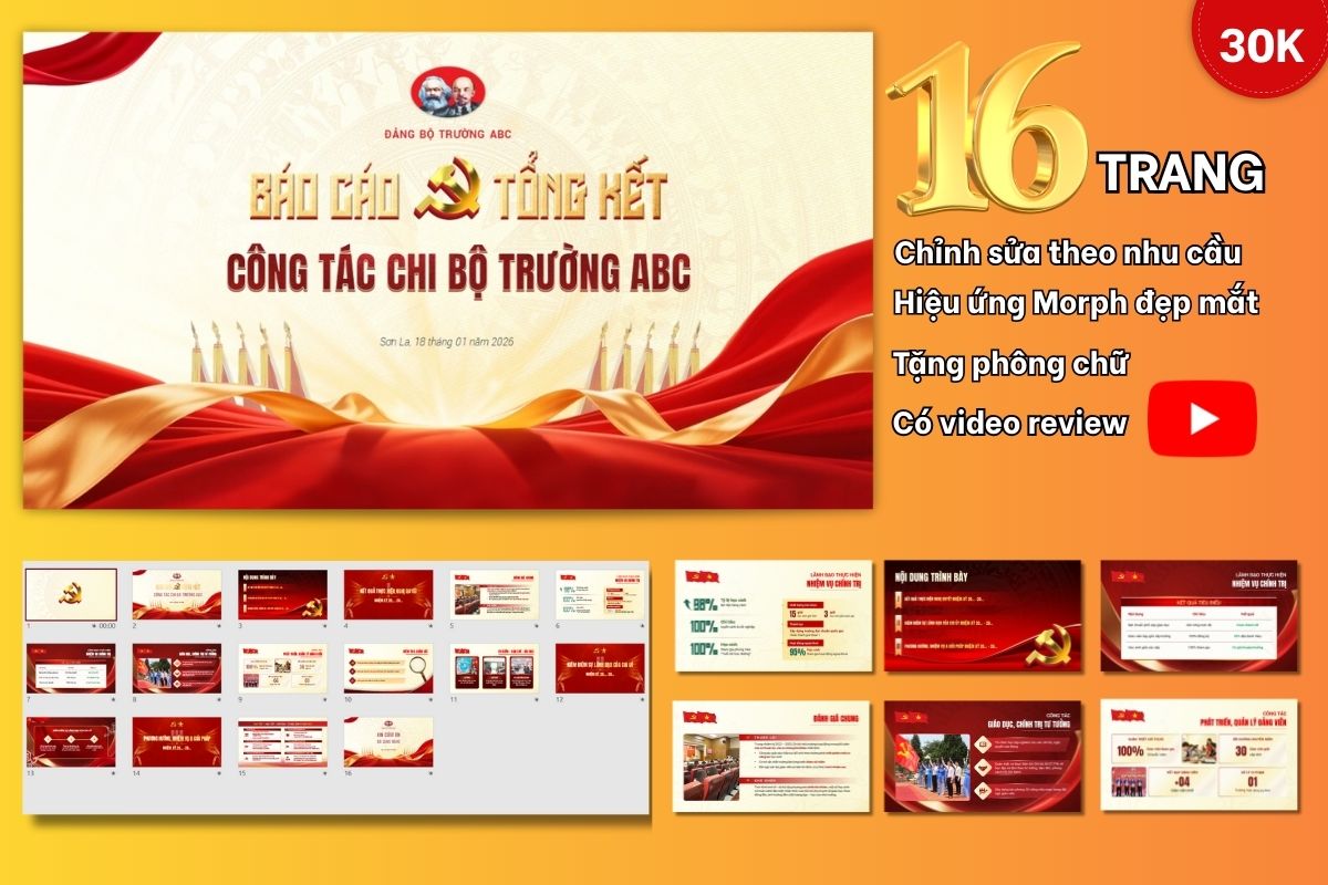 Hình ảnh thực tế của slide báo cáo tổng kết Công tác Chi Bộ 16 trang