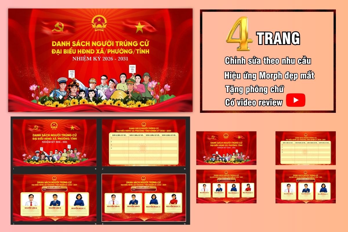 | Nội dung slide | Công bố danh sách người trúng cứ Đại hội Hội Đồng Nhân Dân các cấp (Xã/Phường/Tỉnh) nhiệm kỳ 2026 – 2031. |